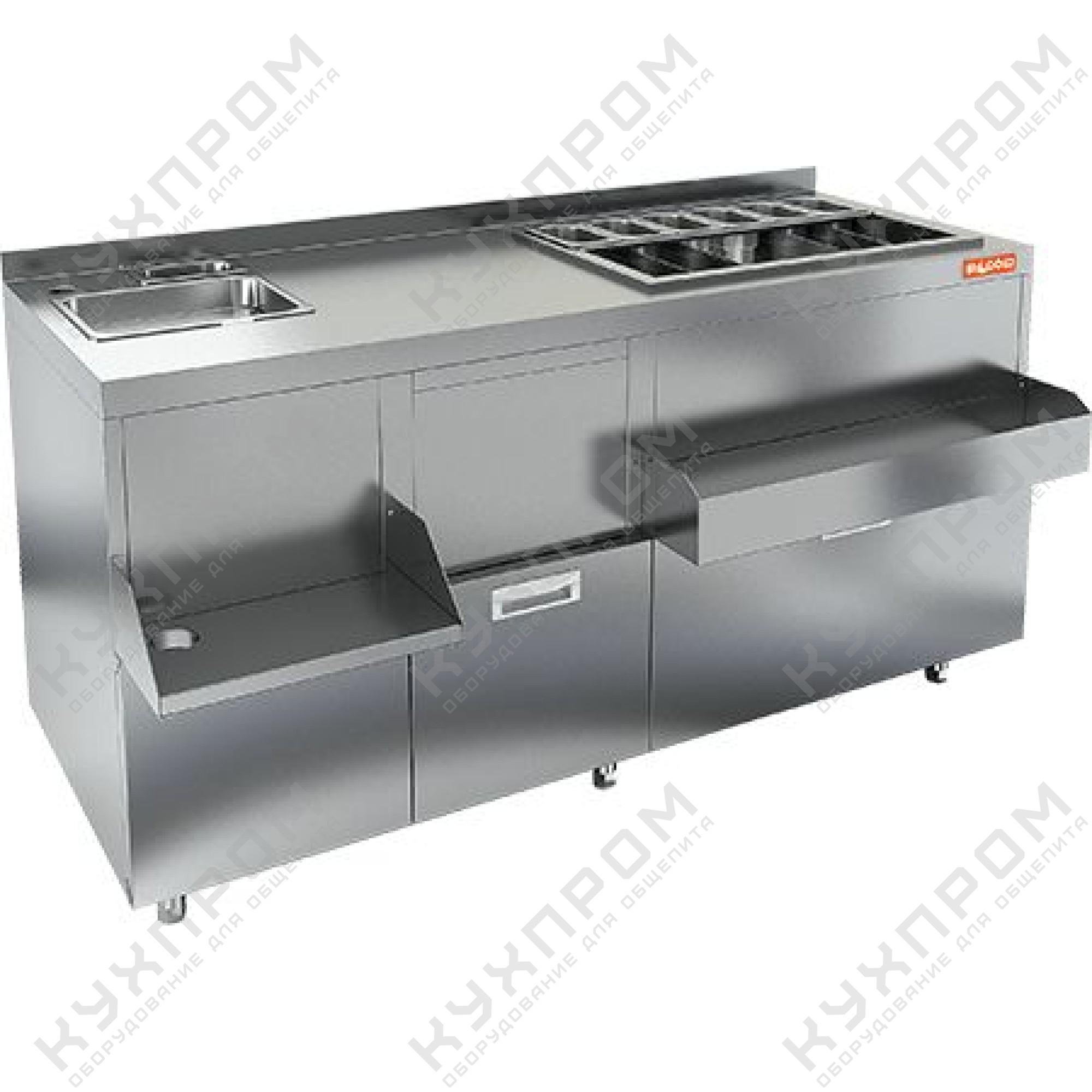 1500х600(770)х850мм, НБМКС-15/6БПК модуль барный коктейльная станция с бортом, теплоизолир. ванна, мойка, полка, карман, 2 ящика, вертушка, 1500х800х850мм,